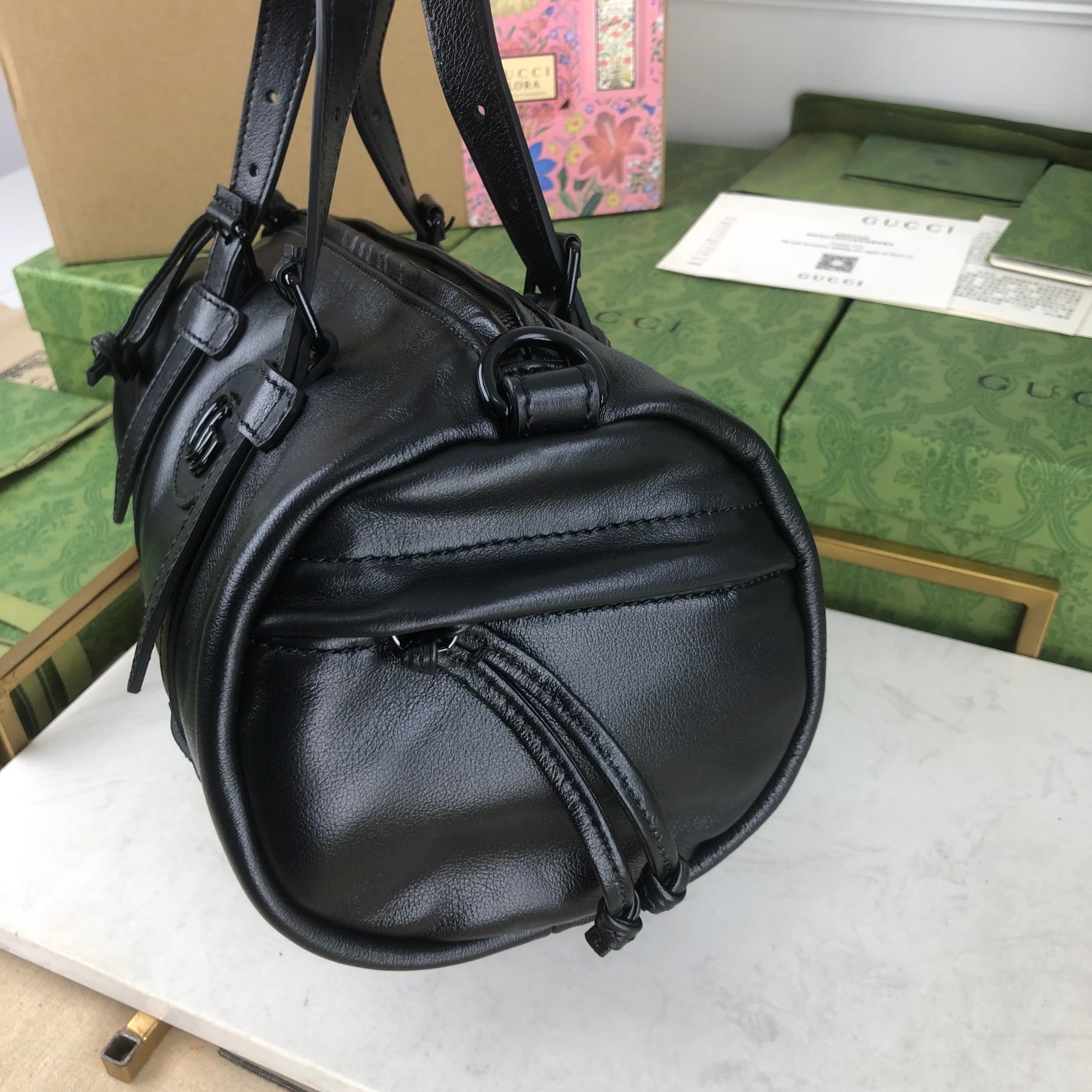 구찌 탑 핸들백 가죽 더플백 스몰 남성