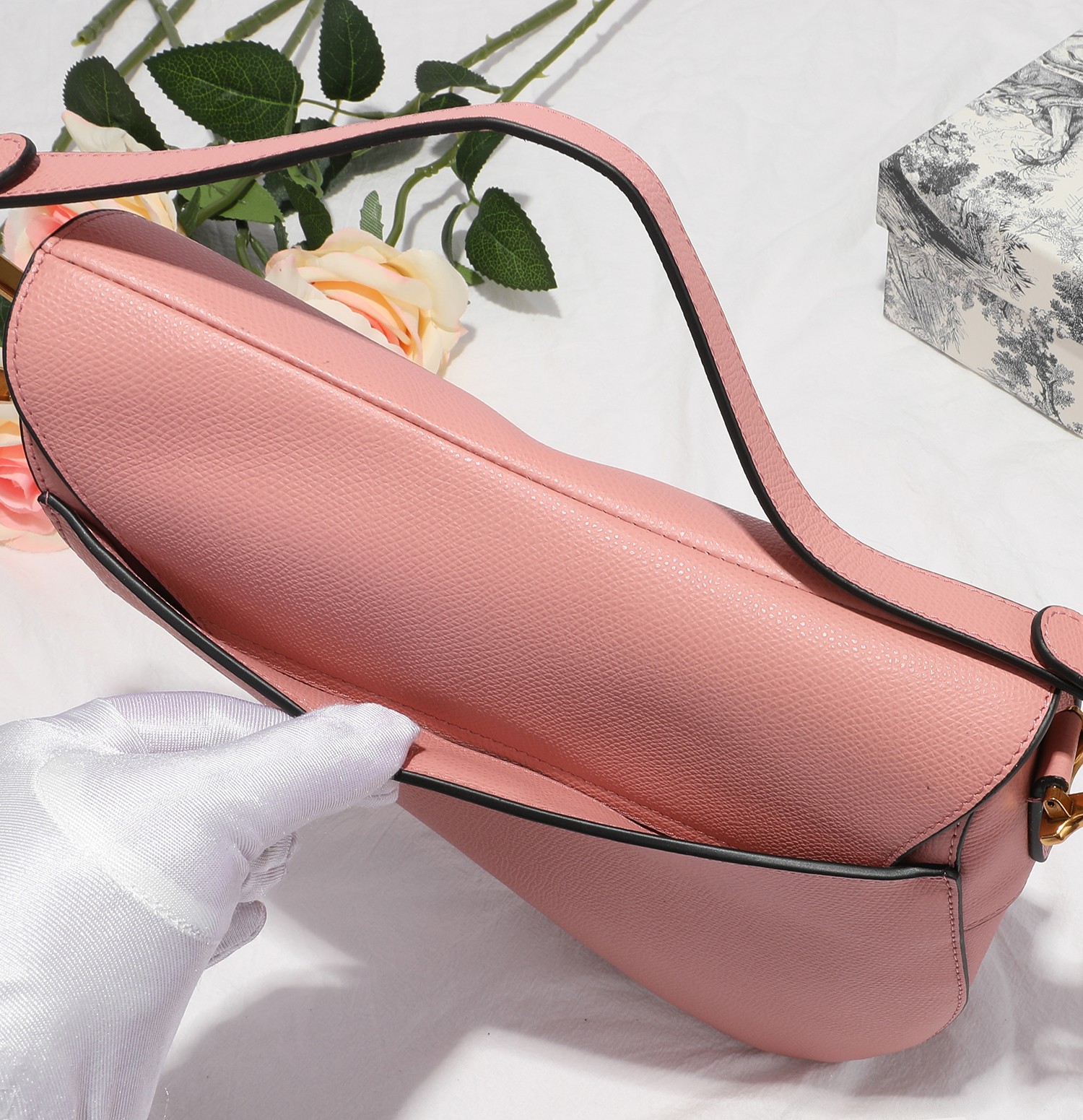 디올 새들백 미듐 그레인 가죽