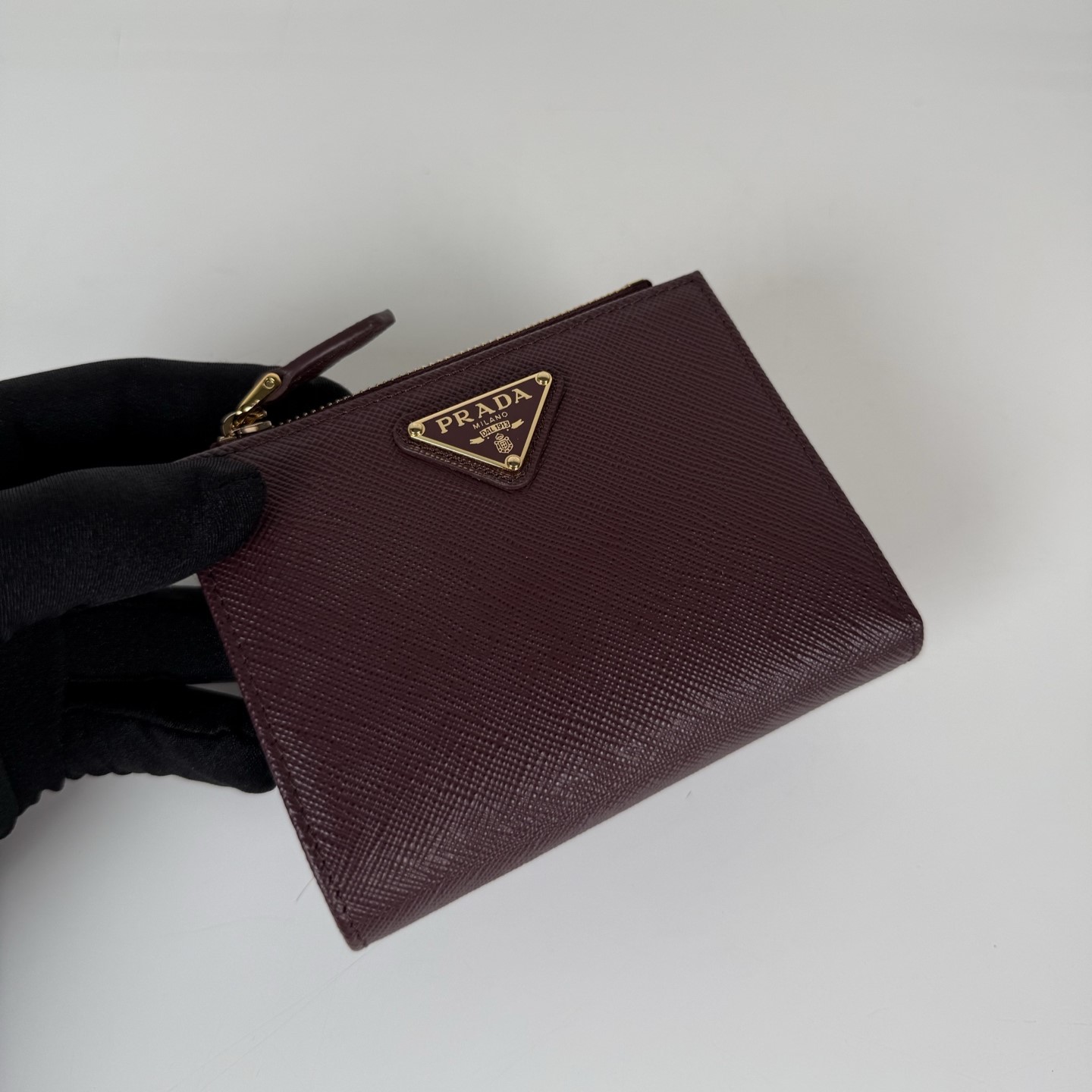 프라다 사피아노 메탈 로고 반지갑 | 명품지갑
