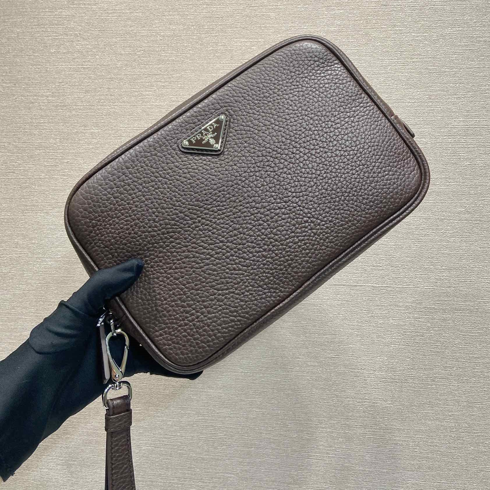 프라다 트라이앵글 로고 가죽 클러치 블랙 2VF017